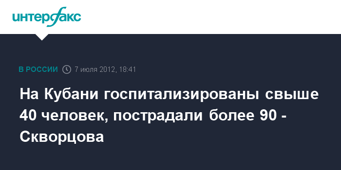 На Кубани госпитализированы свыше 40 человек, пострадали более 90 - Скворцова