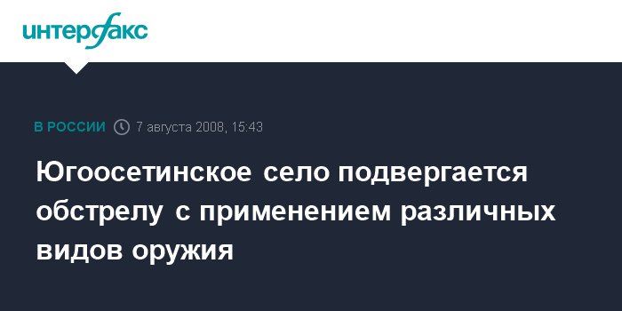 Москва. 7 августа. INTERFAX.RU - Грузинская сторона начала обстрел югоосетинского села Хетагурово. "Из района населенного грузинами селения Авневи ведется обстрел Хетагурова. Применяются пушки боевых машин пехоты, минометы и пулеметы", - сообщил "Интерфаксу" представитель МВД Южной Осетии.