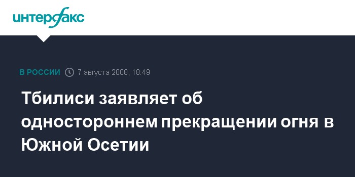 Тбилиси заявляет об одностороннем прекращении огня в Южной Осетии