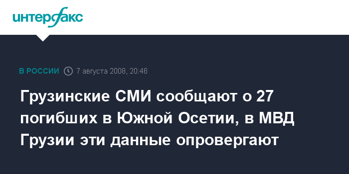 Грузинские СМИ сообщают о 27 погибших в Южной Осетии, в МВД Грузии эти данные опровергают