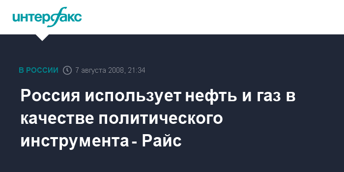 Россия использует нефть и газ в качестве политического инструмента - Райс