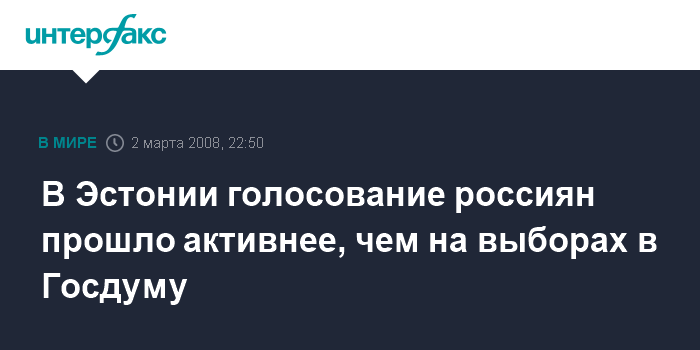 Таллин. 2 марта. INTERFAX.RU - В Эстонии выборы президента России прошли при высокой активности россиян.