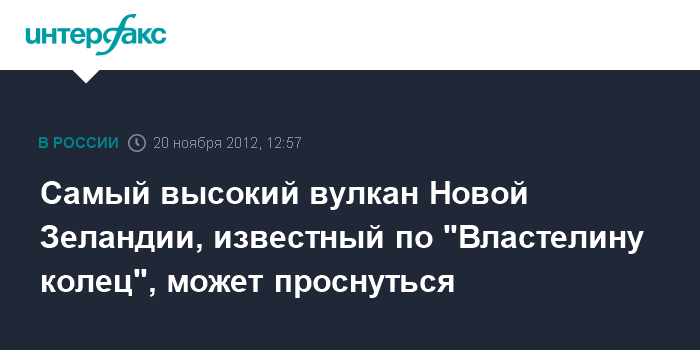 Сидней. 20 ноября. INTERFAX.RU - Вулкан Руапеху, расположенный в Новой Зеландии и известный всему миру по экранизации трилогии Джона Толкиена "Властелин Колец", может скоро проснуться, сообщили вулканологи новозеландского Королевского научно-исследовательского института.