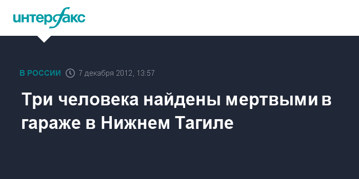 Екатеринбург. 7 декабря. INTERFAX.RU - В Нижнем Тагиле (Свердловская область) начата доследственная проверка по факту смерти трех мужчин в гараже по улице Негасимой. Следственное управление СКР по Свердловской области сообщает, что информация об обнаружении погибших поступила в пятницу днем.