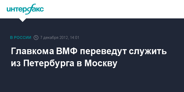 Главкома ВМФ переведут служить из Петербурга в Москву