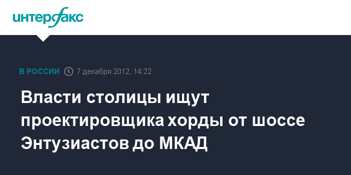 Власти столицы ищут проектировщика хорды от шоссе Энтузиастов до МКАД