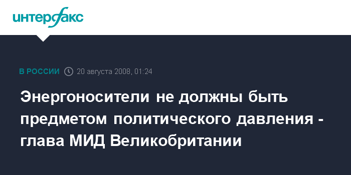 Тбилиси. 20 августа. ИНТЕРФАКС - Глава МИД Великобритании считает крайне важным вопрос энергополитики Евросоюза во взаимоотношениях с Россией.