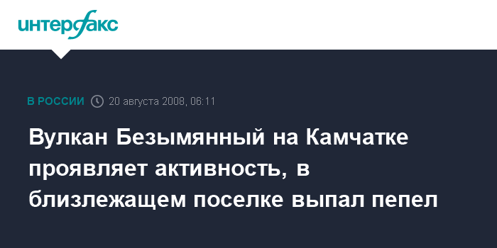 Петропавловск-Камчатский. 20 августа. ИНТЕРФАКС-ДАЛЬНИЙ ВОСТОК - Вулкан Безымянный на Камчатке начал извергаться. Во вторник около 23:30 по местному времени (14:30 мск) из его кратера произошел газо-пепловый выброс.