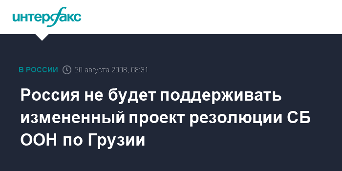 "Россия не сможет поддерживать проект резолюции СБ ООН по Грузии", - сказал В.Чуркин, отметив, что этот проект не включает в себя план мирного урегулирования конфликта, предложенный ранее президентом Франции Николя Саркози и подписанный Грузией и Россией.