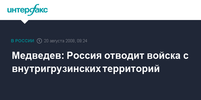 Медведев: Россия отводит войска с внутригрузинских территорий