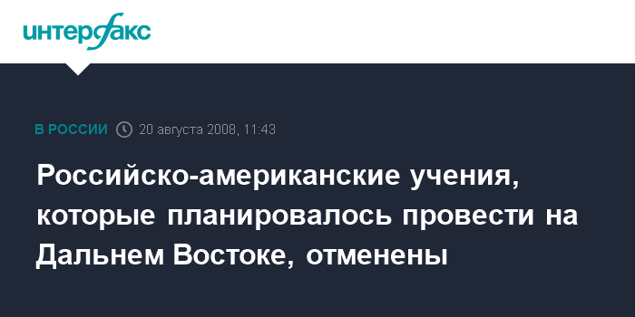 Москва. 20 августа. INTERFAX.RU - Российско-американские антитеррористические учения, которые планировалось провести на Дальнем Востоке, отменены, сообщил в среду "Интерфаксу" военно-дипломатический источник в Москве.