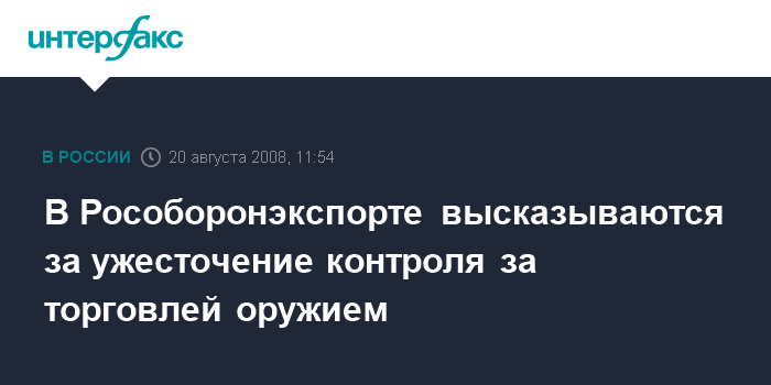 Москва. 20 августа. INTERFAX.RU - В ФГУП "Рособоронэкспорт" заявляют о необходимости более жесткого контроля за торговлей оружием после того, как в зоне грузино-югоосетинского конфликта в руках агрессора оказались образцы вооружений из различных стран мира.