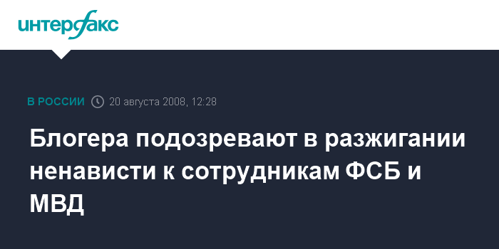Блогера подозревают в разжигании ненависти к сотрудникам ФСБ и МВД