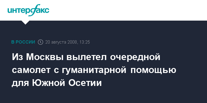 Из Москвы вылетел очередной самолет с гуманитарной помощью для Южной Осетии