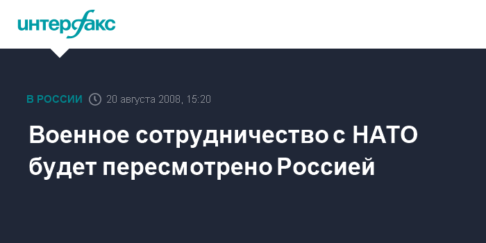 Москва. 20 августа. INTERFAX.RU - Россия пересматривает план военного сотрудничества с НАТО, намеченный на 2008 год, сообщил в среду "Интерфаксу-АВН" информированный военно-дипломатический источник в Москве.
