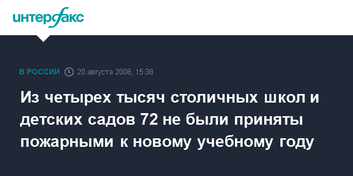 Из четырех тысяч столичных школ и детских садов 72 не были приняты пожарными к новому учебному году