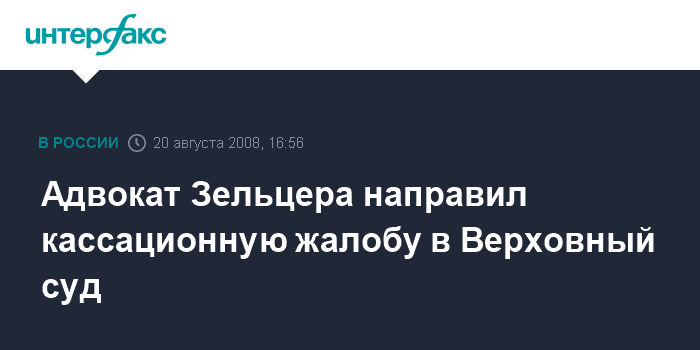 Адвокат Зельцера направил кассационную жалобу в Верховный суд
