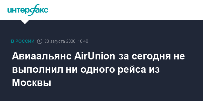 Москва. 20 августа. INTERFAX.RU - Авиакомпании альянса AirUnion - "Домодедовские авиалинии", "Красноярские авиалинии" (КрасЭйр) и "Самара" - сегодня не выполнили ни одного рейса из московского аэропорта "Домодедово", свидетельствуют данные он-лайн табло аэропорта.