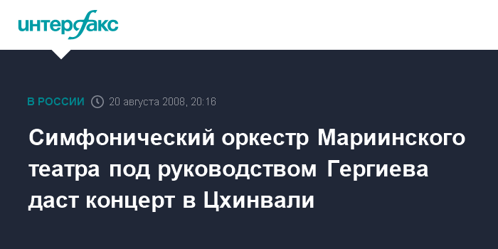 Цхинвали. 20 августа. ИНТЕРФАКС - Концерт симфонического оркестра Мариинского театра под руководством народного артиста России, Северной и Южной Осетии Валерия Гергиева состоится в четверг в Цхинвали.
