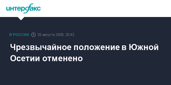 Москва.20 августа. ИНТЕРФАКС - Президент Южной Осетии Эдуард КОкойты подписал указ об отмене чрезвычайного положения в республике, сообщила председатель комитета по информации и печати Ирина Гаглоева.