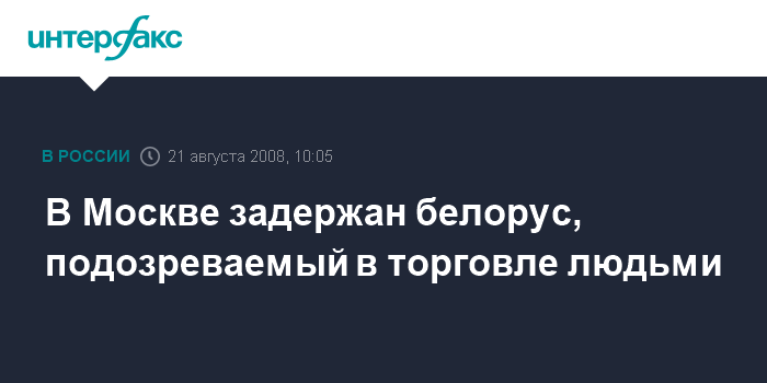 Москва. 21 августа. INTERFAX.RU - В южном округе столицы задержан находившийся в розыске гражданин Белоруссии, которого подозревают в торговле людьми, сообщил "Интерфаксу" в четверг источник в правоохранительных органах.