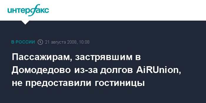 По его словам, пассажиры в гостиницы не размещались из-за недостатка мест, "все обеспечиваются питанием по мере возможности". В минувшую среду авиакомпании альянса не выполнили ни одного рейса из столичного аэропорта "Домодедово" из-за имеющейся задолженности перед аэропортом.