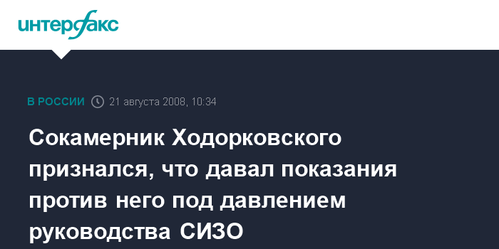 Сокамерник Ходорковского признался, что давал показания против него под давлением руководства СИЗО