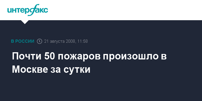Москва. 21 августа. INTERFAX.RU – За минувшие сутки в столице произошло 49 пожаров, 20 из них - в жилых домах, сообщили в четверг "Интерфаксу" в пресс-службе ГУ МЧС России по Москве.