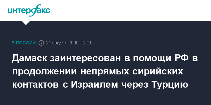 Дамаск заинтересован в помощи РФ в продолжении непрямых сирийских контактов с Израилем через Турцию