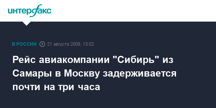 Москва. 21 августа. INTERFAX.RU - Самарские пассажиры почти три часа не могут вылетать из аэропорта "Курумоч" в Москву из-за задержки рейса №34 в Домодедово авиакомпании "Сибирь".