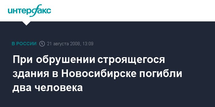 Москва. 21 августа. INTERFAX.RU - Два человека погибли и два пострадали в результате обрушения в строящемся торгово-развлекательном центре в Калининском районе Новосибирска.