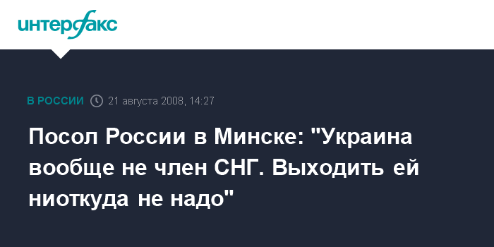 Минск. 21 августа. INTERFAX.RU - Посол России в Белоруссии Александр Суриков считает, что разговоры о возможном выходе Украины из СНГ вслед за Грузией не имеют под собой юридического основания.