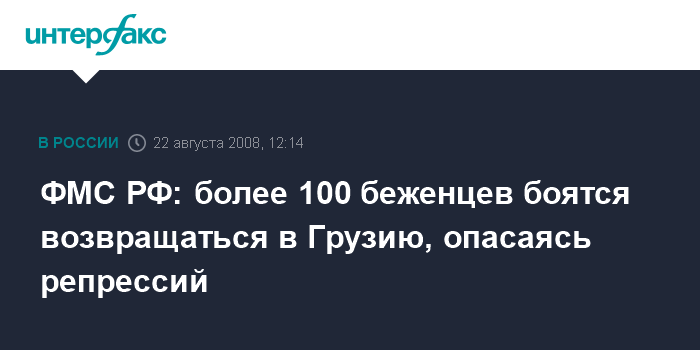 ФМС РФ: более 100 беженцев боятся возвращаться в Грузию, опасаясь репрессий