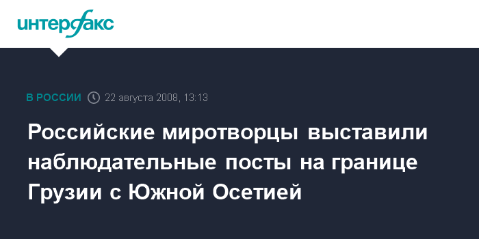 Москва. 22 августа. INTERFAX.RU - По административной границе Грузии с Южной Осетией выставлено 18 миротворческих наблюдательных постов, заявил замглавы Генштаба РФ Анатолий Ноговицын.