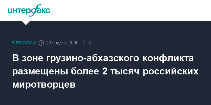 Москва. 22 августа. INTERFAX.RU - В настоящее время в зоне грузино-абхазского конфликта находятся 2142 российских миротворца, сообщает Генштаб ВС РФ. "На сегодня здесь, согласно мандату миротворцев, находится личный состав с техникой и вооружением в количестве 2142 человека", - заявил в пятницу на брифинге в Москве замначальника Генштаба генерал-полковник Анатолий Ноговицын, который сообщил также, что миротворцы приступили ко второму этапу размещения наблюдательных постов в зоне грузино-абхазского конфликта.