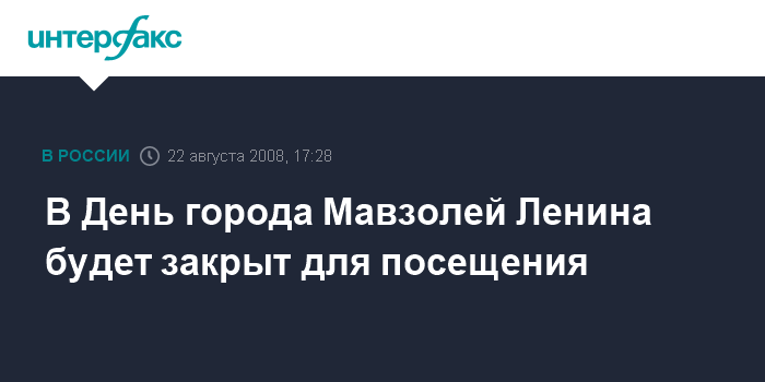 Москва. 22 августа. INTERFAX.RU - В День города, 6 сентября, Мавзолей Владимира Ленина на Красной площади будет закрыт для посещения.