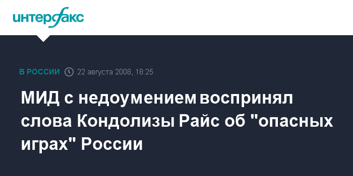 МИД с недоумением воспринял слова Кондолизы Райс об "опасных играх" России