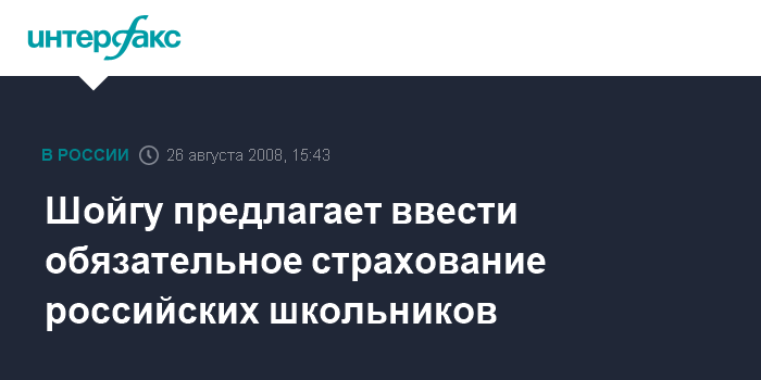 Шойгу предлагает ввести обязательное страхование российских школьников