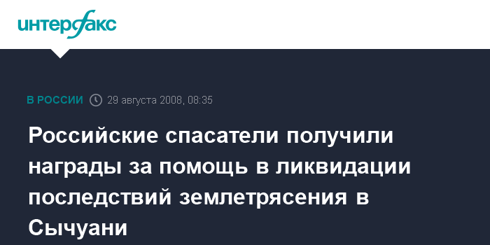 Российские спасатели получили награды за помощь в ликвидации последствий землетрясения в Сычуани