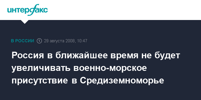 Москва. 29 августа. INTERFAX.RU - Россия пока не собирается наращивать своё военно-морское присутствие в акватории Средиземного моря.