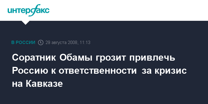 Соратник Обамы грозит привлечь Россию к ответственности за кризис на Кавказе