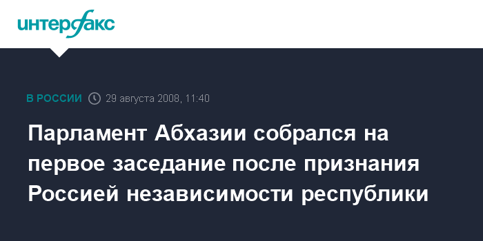 Москва. 29 августа. INTERFAX.RU - В Сухуми в пятницу открылась первая после признания Россией независимости Абхазии сессия парламента республики.