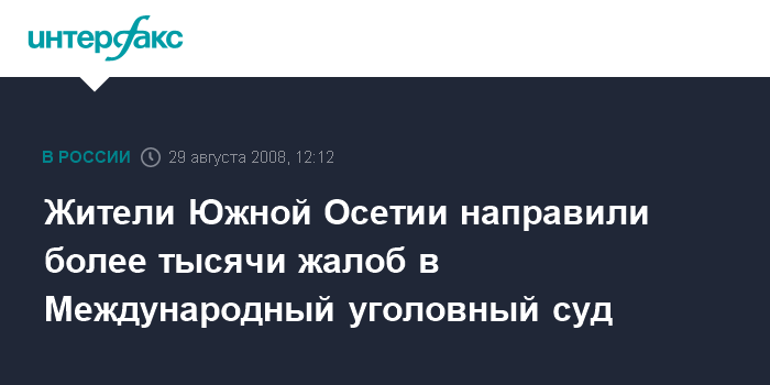 Москва. 29 августа. INTERFAX.RU - Количество жалоб, поданных жителями Южной Осетии в Международный уголовный суд, превысило тысячу, сообщает МИД России.