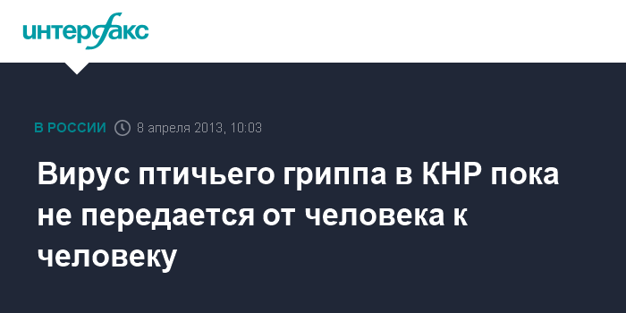 Вирус птичьего гриппа в КНР пока не передается от человека к человеку