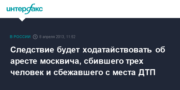 Москва. 8 апреля. INTERFAX.RU - Уголовное дело возбуждено в отношении водителя иномарки, сбившего накануне трех человек в Москве, среди которых была беременная женщина, скончавшаяся от полученных травм, сообщили "Интерфаксу" в пресс-службе ГУ МВД России по Москве.