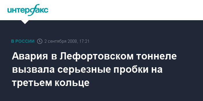 Москва. 2 сентября. INTERFAX.RU - Столкновение нескольких автомобилей в Лефортовском туннеле сегодня днем привело к блокированию движения по внешнему радиусу третьего транспортного кольца, сообщил "Интерфаксу" источник в правоохранительных органах.