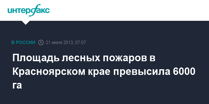 Площадь лесных пожаров в Красноярском крае превысила 6000 га