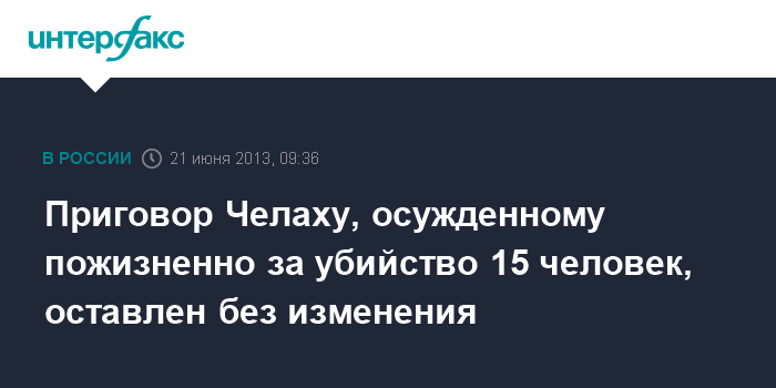 Приговор Челаху, осужденному пожизненно за убийство 15 человек, оставлен без изменения