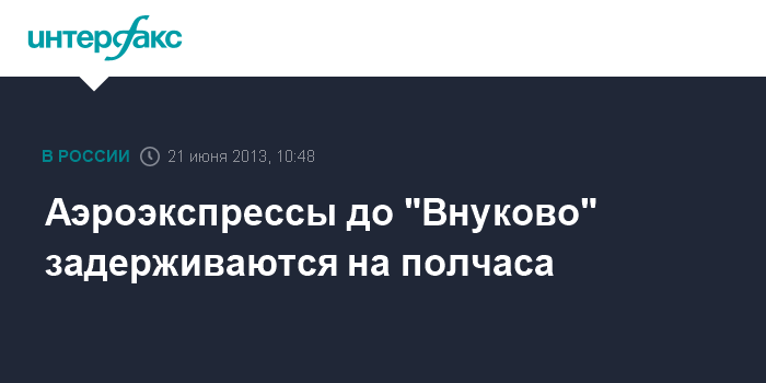 Как сообщили "Интерфаксу" в департаменте транспорта и развития дорожно-транспортной инфраструктуры, на полчаса задерживаются поезда, следующие из аэропорта "Внуково" до Киевского вокзала", запланированные на 10:00 и 11:00.