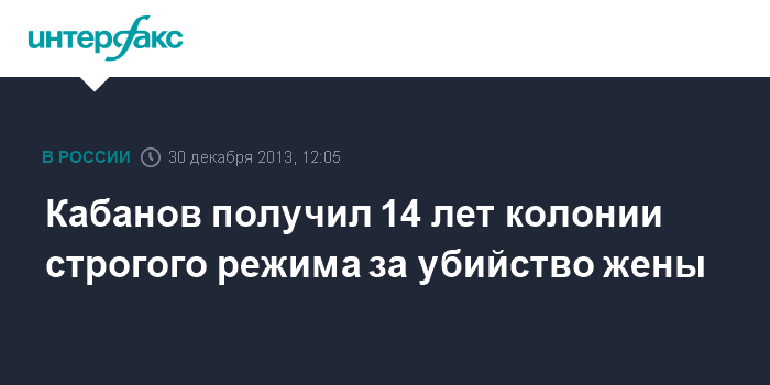 Кабанов получил 14 лет колонии строгого режима за убийство жены